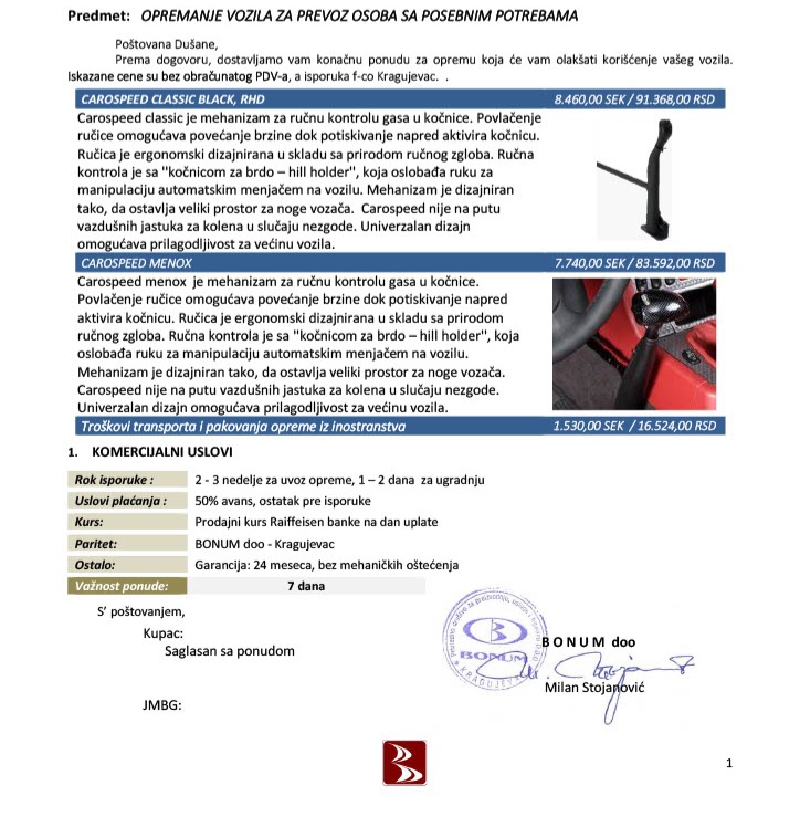 Uređaj košta 130000 din sa ugradnjom, a atest 3300 u AMSS + 4900 vanredni tehnički.